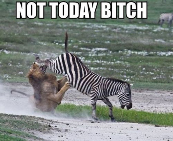Not today bitch! Zebra has decided not to be a lion lunch.