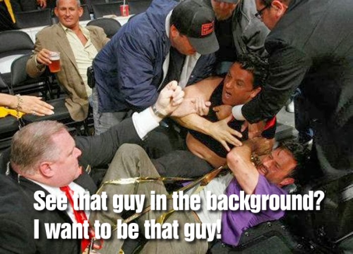 See that guy in the background? I want to be that guy! This guy drinks his drink and he does not care what the general struggle feet away :)