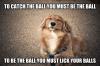 To catch the ball you must be the ball. To be the ball you must lick your balls.